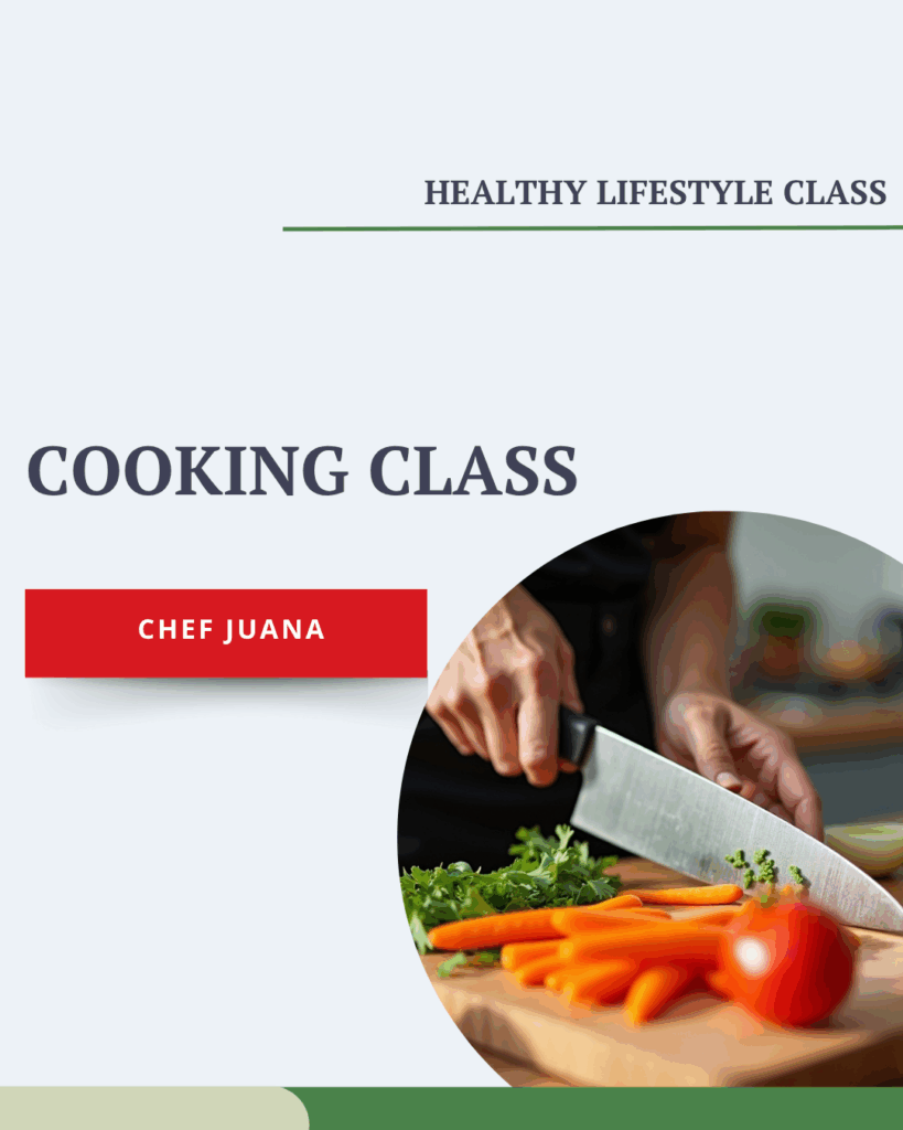 Join Chef Juana for a fun and flavorful hands-on cooking workshop! Learn simple, healthy recipes and helpful kitchen techniques you can easily recreate at home. Whether you’re a beginner or an experienced cook, this class offers something for everyone — from tips on meal prep to creative ways to add variety and nutrition to your everyday meals.