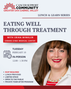 Eating during cancer treatment can feel overwhelming, and there’s no one-size-fits-all approach. In this session, oncology dietitian Erika Winkler, MS, Rd, CSO, CNSC, will share realistic, evidence-based strategies to help you nourish your body, maintain strength, and manage common side effects that can affect your eating. We’ll discuss small, doable adjustments that support energy and well-being and review some common nutrition-related myths to be aware of. We will end with a Q&A session to address your questions.